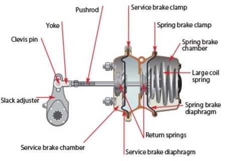 - Khoang phanh dịch vụ: Dùng khí nén khi đạp phanh để đẩy ty phanh ra.