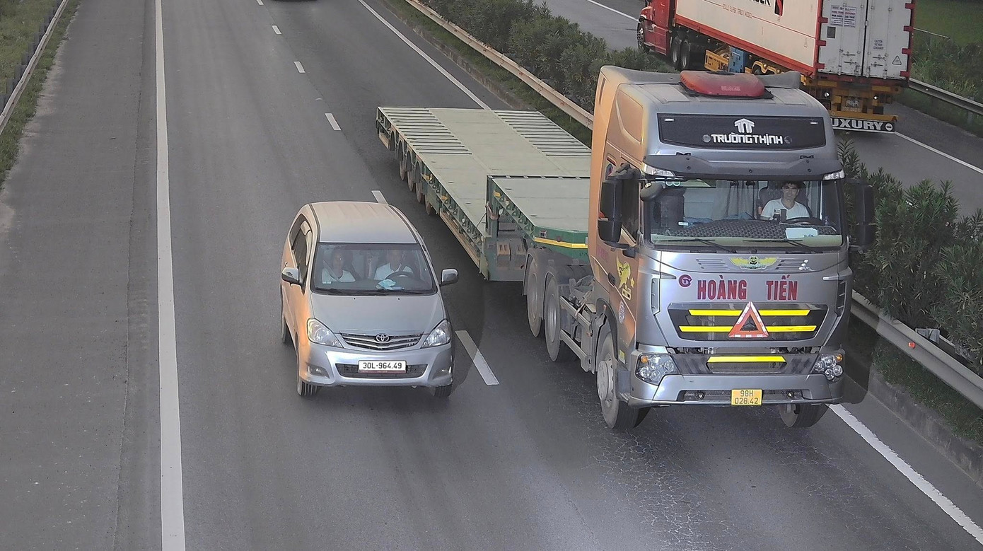 Tài xế chở xe máy trong khoang hành khách trên cao tốc Nội Bài - Lào Cai bị camera AI phát hiện.