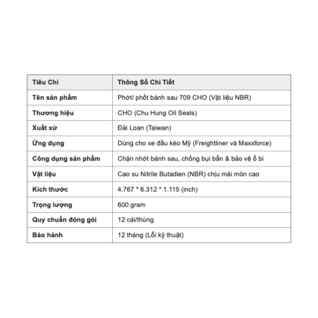 Phớt/ Phốt Bánh Sau 709 CHO (NBR) - Giải Pháp Chắn Nhớt Tối Ưu Cho Xe Đầu Kéo Mỹ