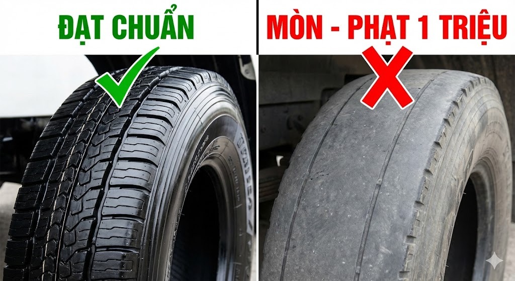 Đầu năm đi đăng kiểm hoặc bị kiểm tra hành chính, lỗi lốp mòn thường xuyên bị các bác tài bỏ qua. Lốp mòn không chỉ bị phạt tiền (từ 800.000đ - 1.000.000đ) mà còn là nguyên nhân hàng đầu gây nổ lốp, lật xe trên cao tốc. Mẹo nhỏ: Hãy kiểm tra độ sâu gai lốp và áp suất lốp mỗi ngày.