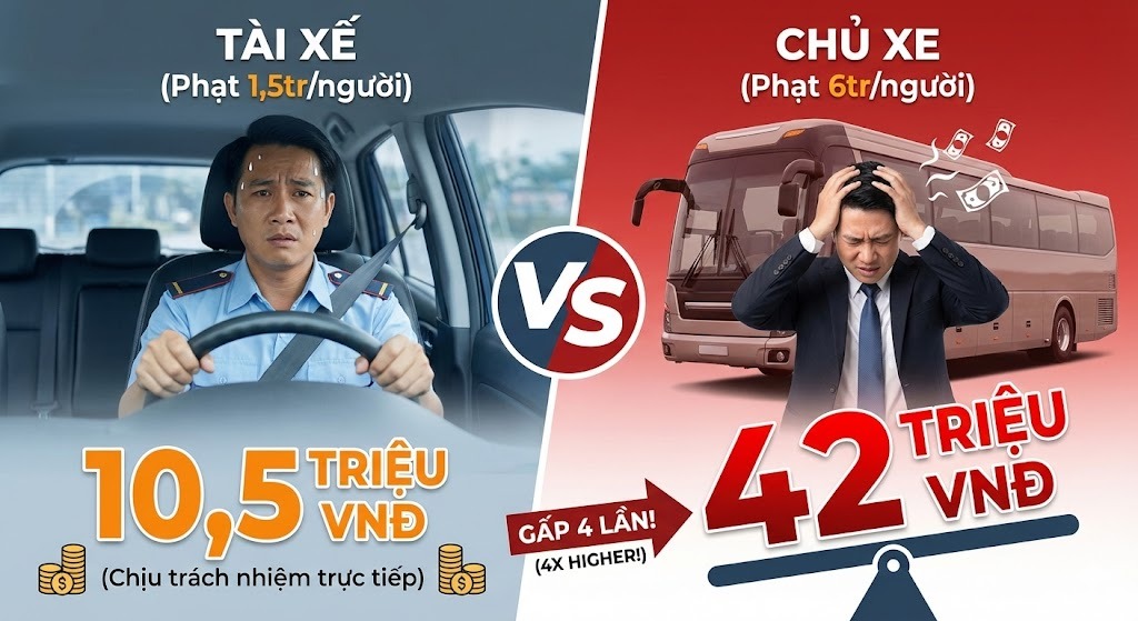 - Đối với chủ xe (Cá nhân/Doanh nghiệp): Mức phạt là 6 triệu đồng/người vượt quá.